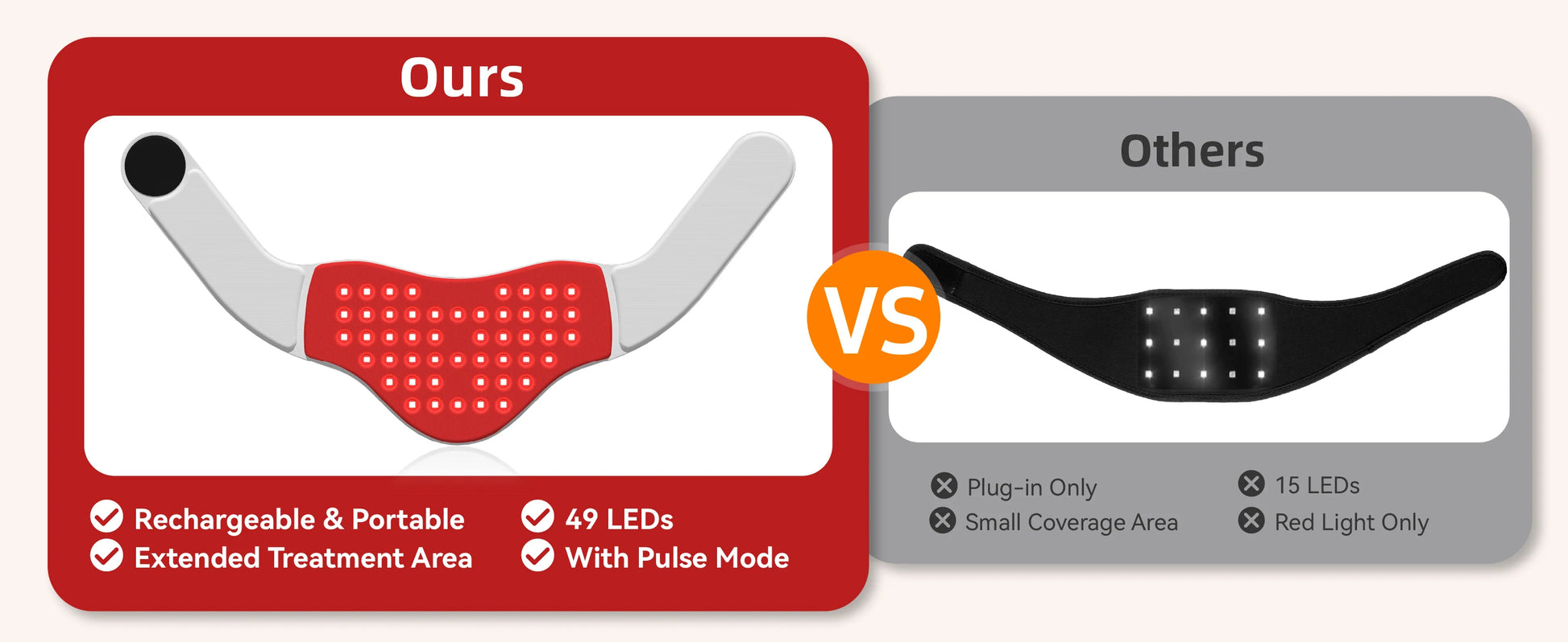 Combines 660nm red light and 850nm near-infrared wavelengths to relieve neck and shoulder pain.